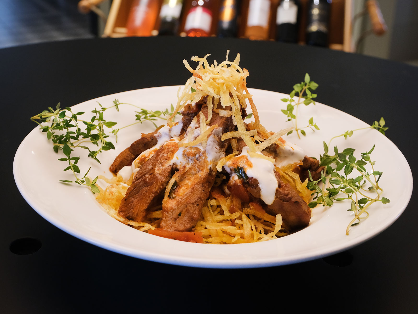 (Special Marinated Tenderloin, Red Onion, Potato Garnish)