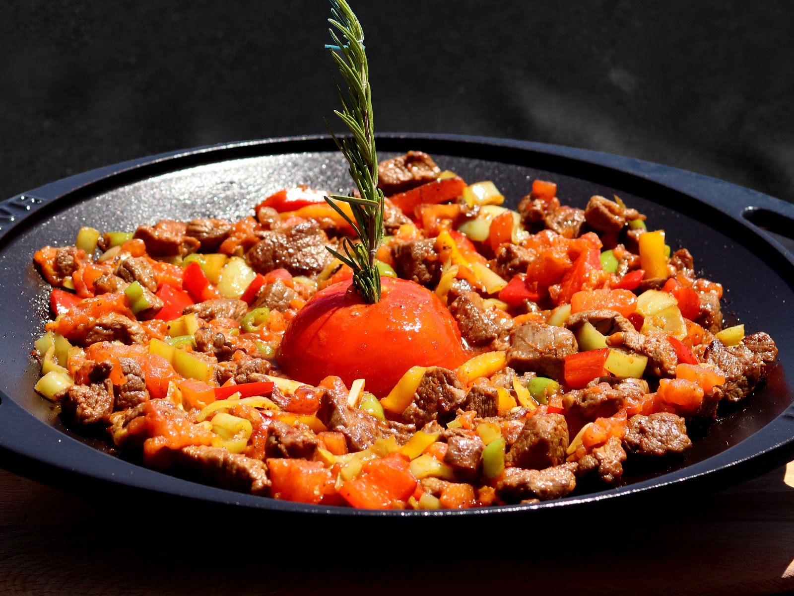 (Tenderloin, Tomatoes, Coloured Peppers, Garlic)