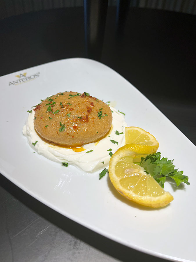 (Goat’s Cheese Topped With Vine Tomatoe, Peppers And Kashar Cheese,Finished In The Oven)