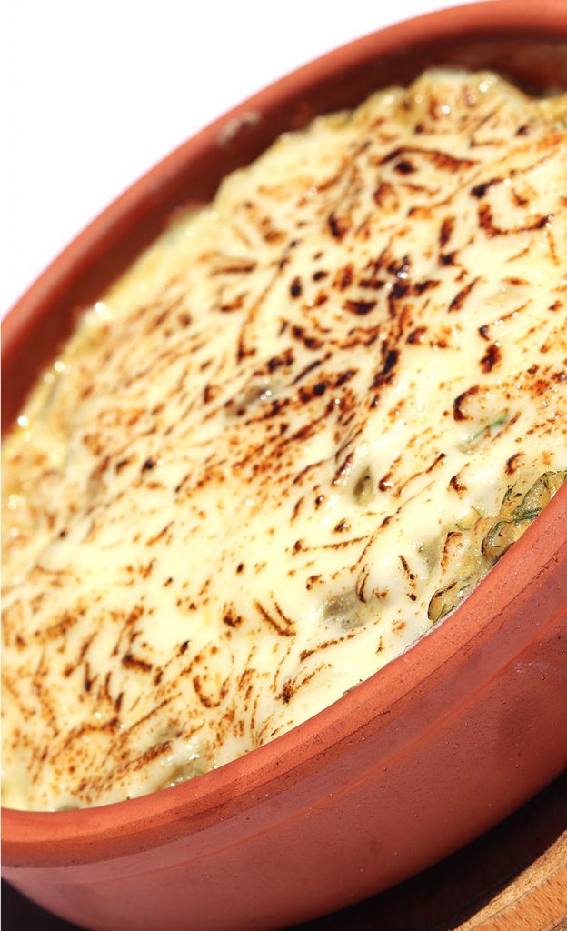 (Eubergine, Red Onions, Garlic, Dill, Cream And Mozzarella)
