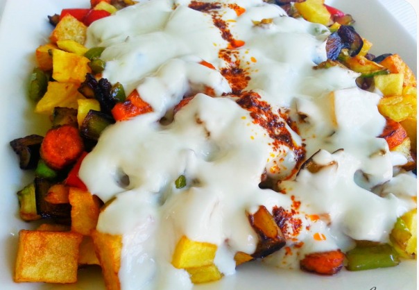 Süzme Yoğurt, Sarımsak, Acı Kurutulmuş Biber, Zeytinyağı