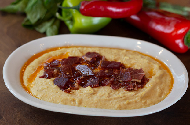 (Puréed Chickpeas With Tahini, Garlic And Butter, Bacon)