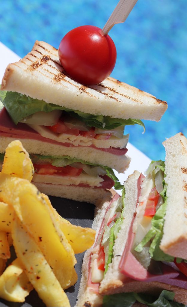 (A Rich Sandwich With Salami, Spicy Beef Sausage, Freshvine Tomatoes Served Potatoes )